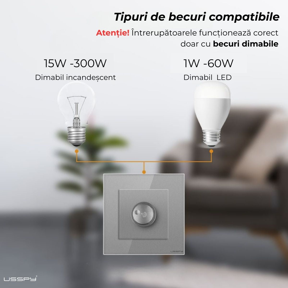 Atenție! Intrerupatoarele funcționează corect doar cu becuri dimabile!