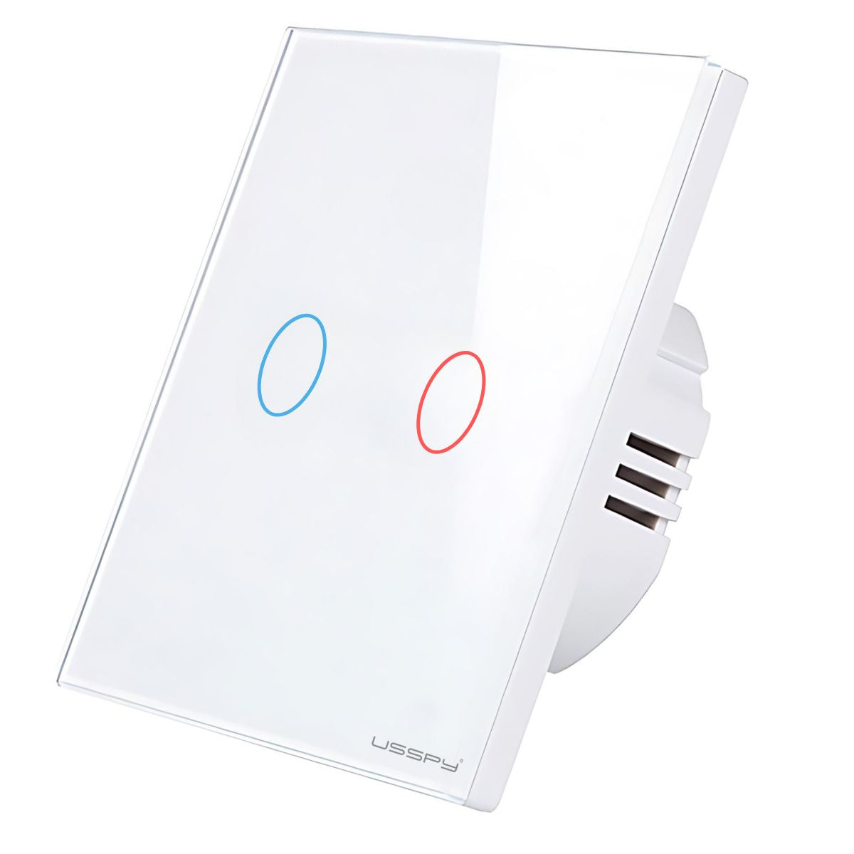 Intrerupator simplu touch, rama sticla securizata, USSPY®, 2 canale, alb