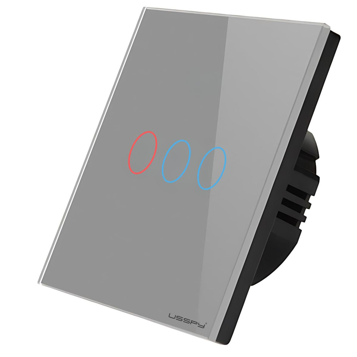 Intrerupator simplu touch, rama sticla securizata, USSPY®, 3 canale, gri