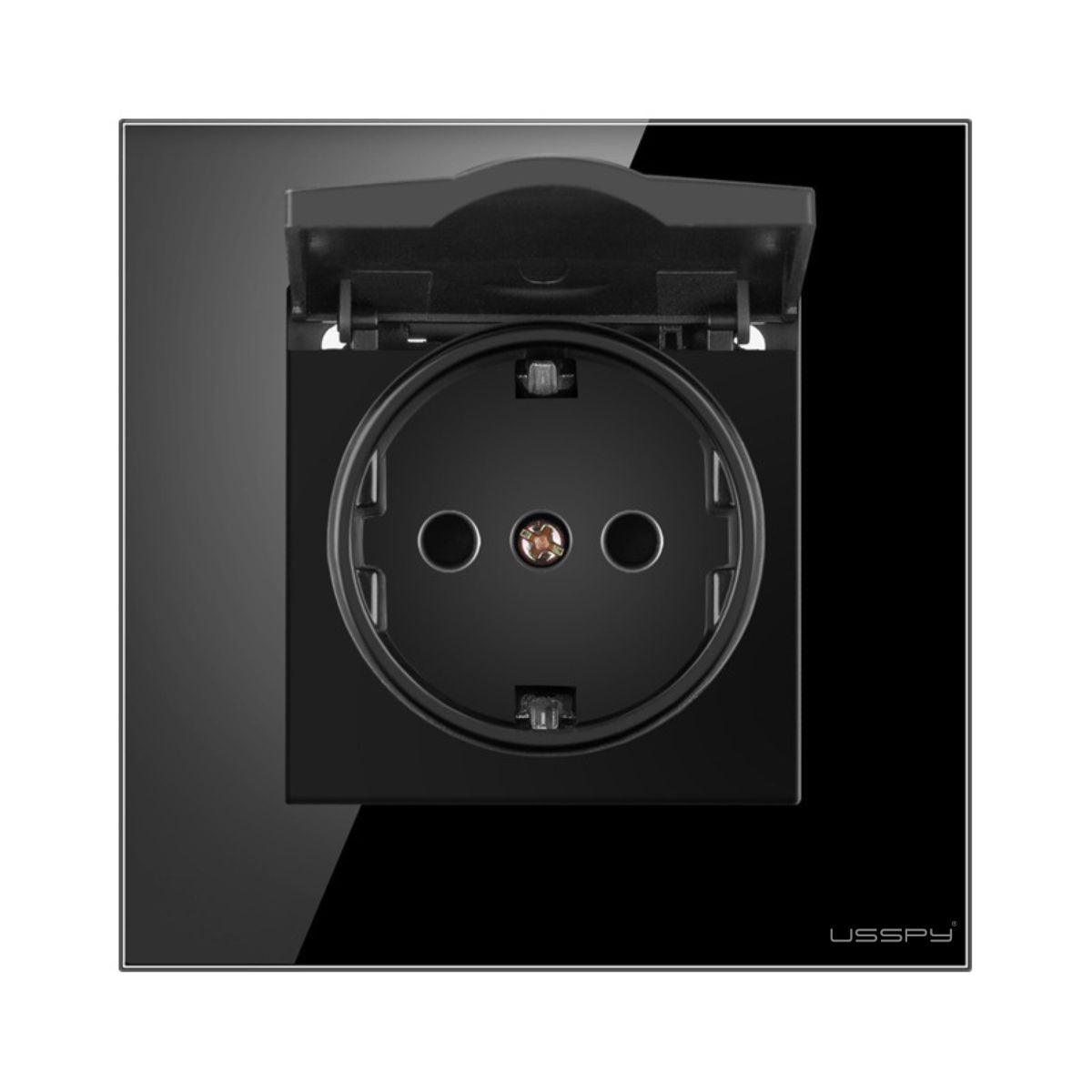 Priza cu capac, rama din sticla securizata , USSPY®, protectie copii, schuko 16A, negru