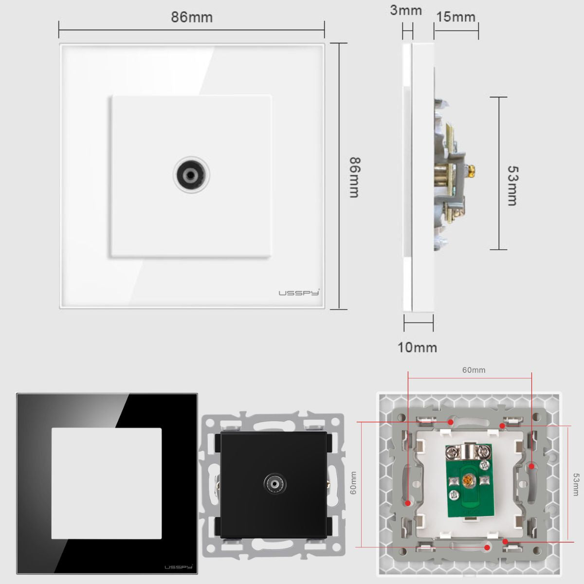 Priza TV cu rama din sticla securizata, USSPY®, alb