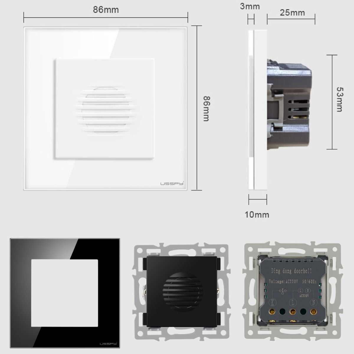 Sonerie ding-dong, rama din sticla securizata, USSPY®, negru
